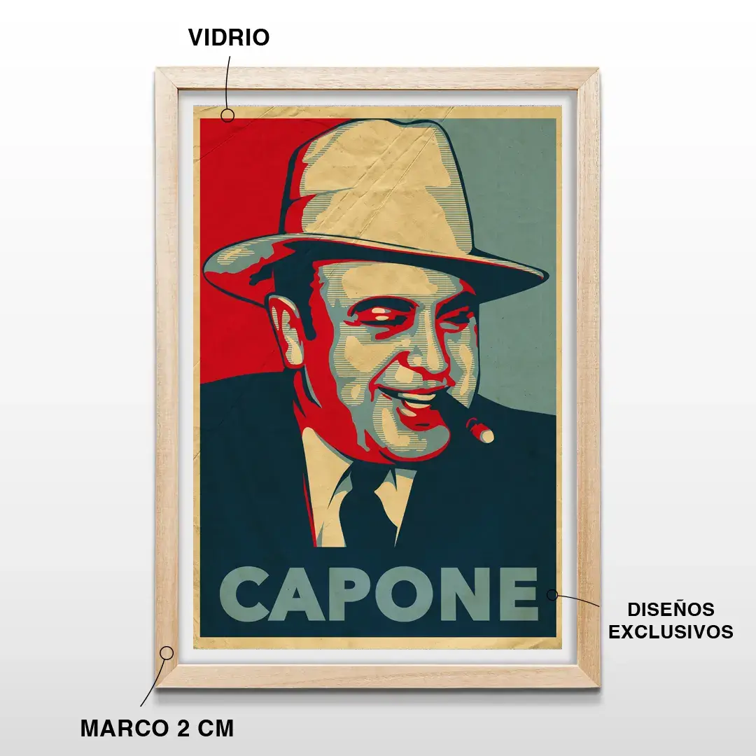 Si buscás comprar cuadros decorativos en Argentina que celebren la era de la prohibición y el mito de los grandes gánsters, este cuadro de Al Capone estilo póster arte pop vintage premium es la inversión ideal para quienes buscan una decoración de autor que inspire seguridad, distinción y un ambiente lleno de carácter y narrativa histórica.