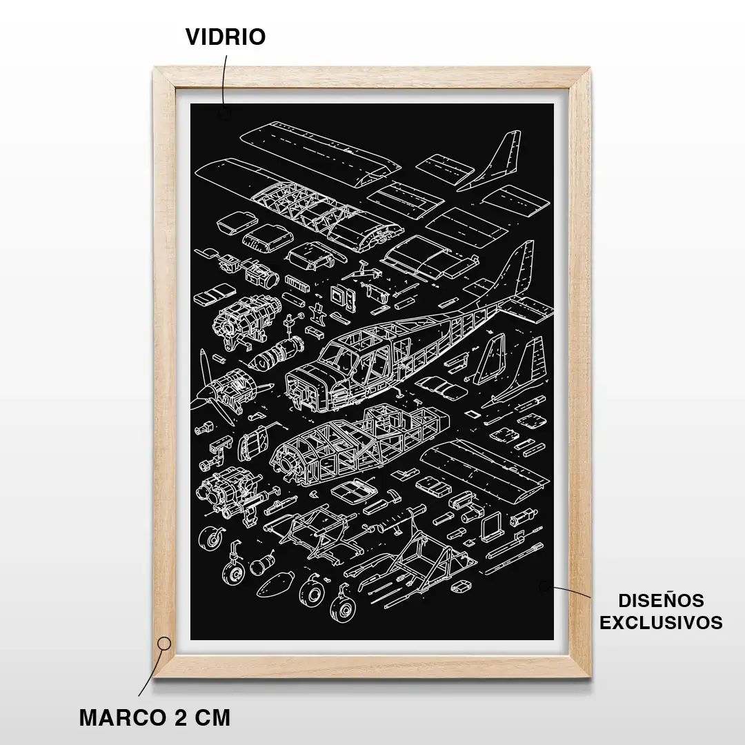 Orientado a quienes desean comprar cuadros decorativos de aviación en Argentina, esta pieza se posiciona en búsquedas como cuadro técnico de avioneta, decoración para pilotos, arte industrial aeronáutico y lámina de avión en despiece. Una opción con carácter preciso y estética moderna que convierte la mecánica del vuelo en protagonista visual.