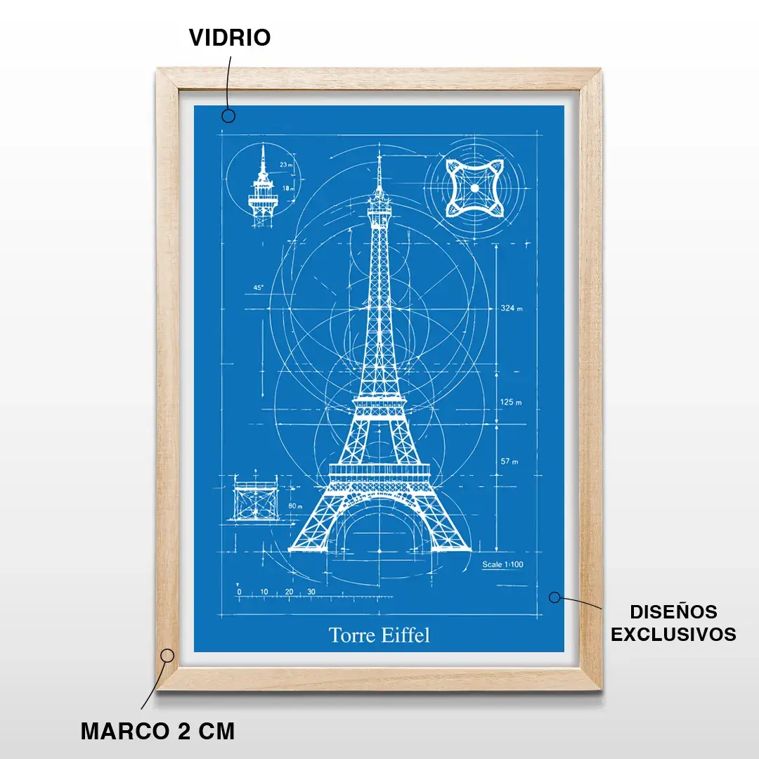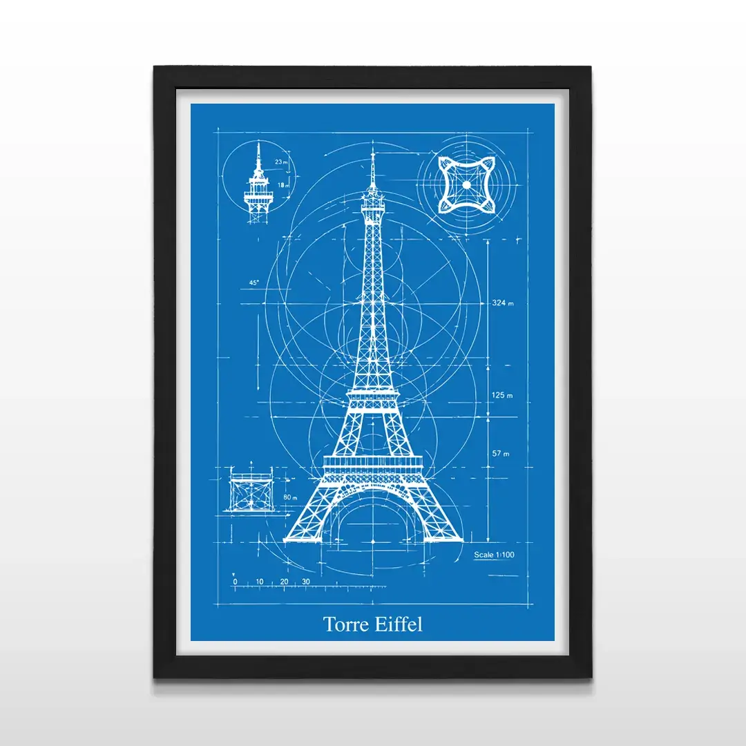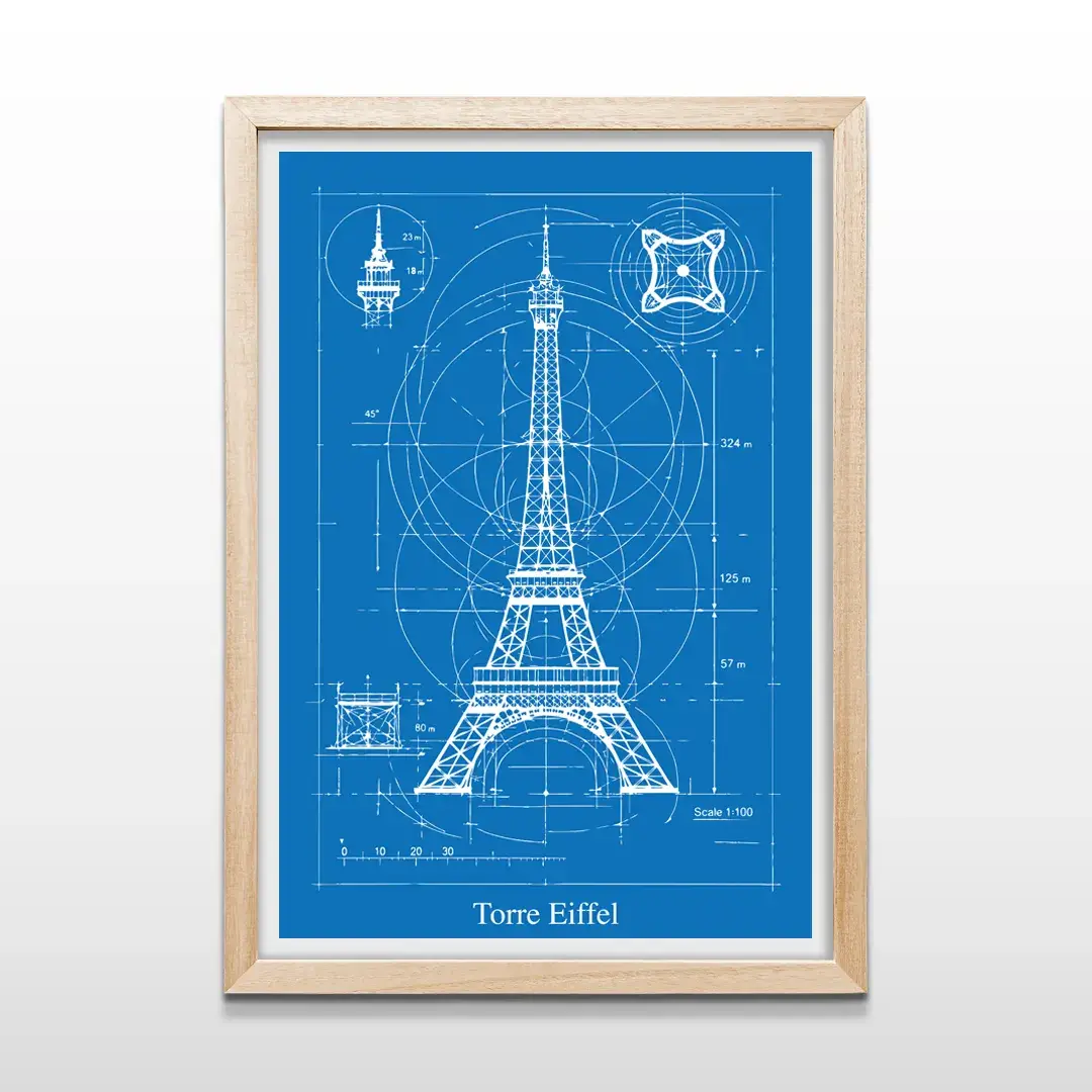 Pensado para quienes desean comprar cuadros decorativos de arquitectura en Argentina, este cuadro blueprint de la Torre Eiffel es una pieza arte decorativo premium ideal para sumar carácter intelectual, elegancia técnica y una referencia directa al diseño y la ingeniería clásica europea.
