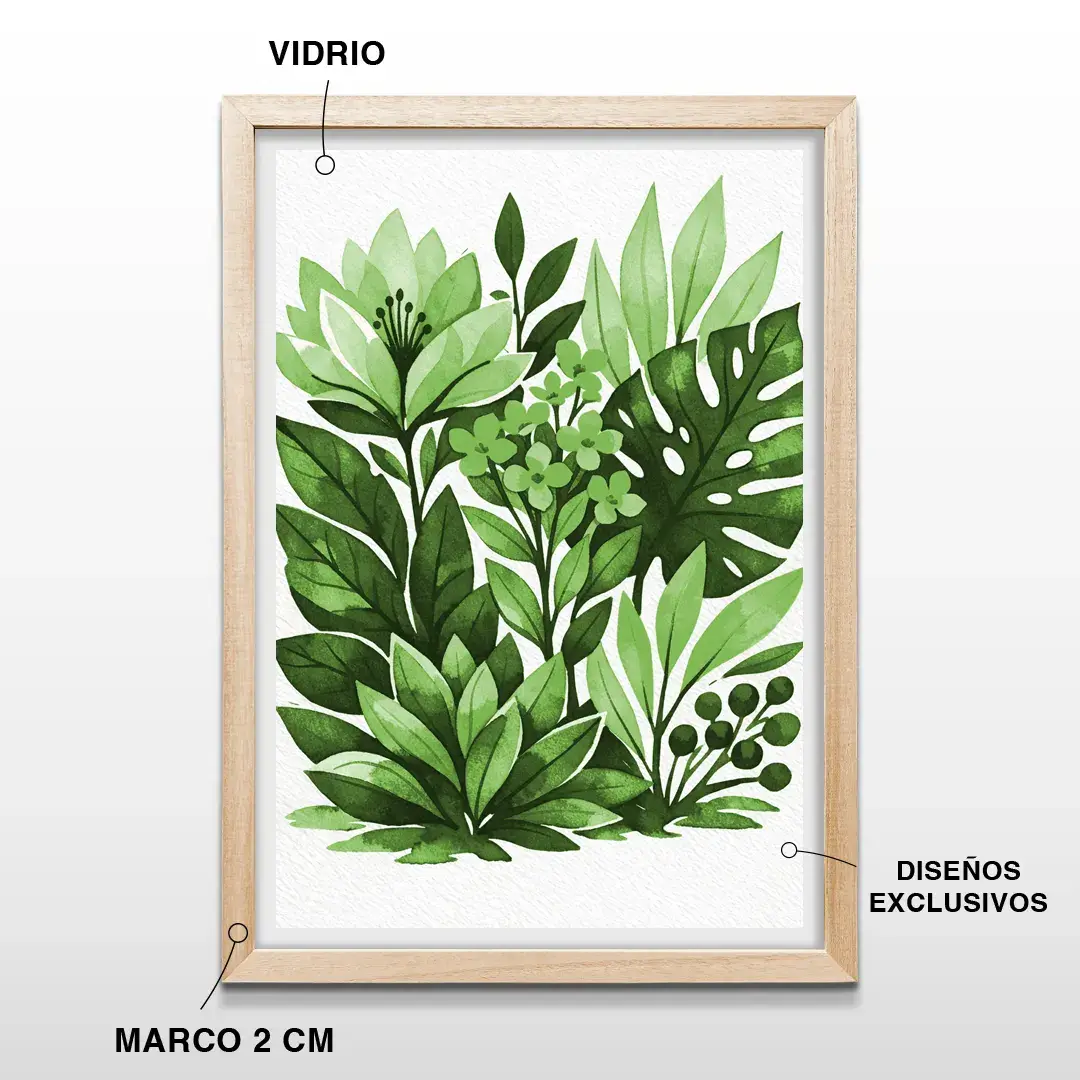Pensado para quienes desean comprar cuadros botánicos en Argentina, este cuadro de hojas y flores estilo acuarela es una pieza de arte de naturaleza ideal para aportar frescura, suavizar el entorno y transformar la pared en una expresión permanente de bienestar y elegancia natural.