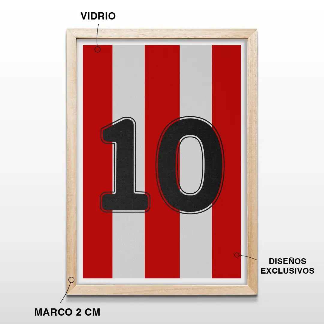 El cuadro decorativo “Camiseta 10 Estudiantes” condensa el espíritu competitivo y la identidad de la Escuela de La Plata en una pieza de diseño sobria y contemporánea. A través de una estética minimalista, el bastón rojo y blanco se transforma en un símbolo de carácter, inteligencia futbolística y legado, representando una historia construida desde el esfuerzo y la excelencia.
