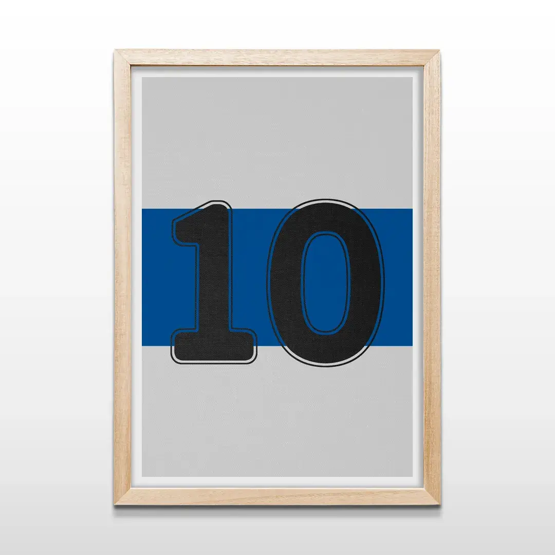 El cuadro decorativo “Camiseta 10 Gimnasia” condensa la esencia del Lobo en una pieza de diseño sobria y contemporánea, donde la franja azul sobre fondo blanco se convierte en un símbolo de lealtad, identidad y pertenencia. Esta obra reinterpreta la pasión tripera desde una estética minimalista, pensada para quienes sienten el club como parte de su historia personal.