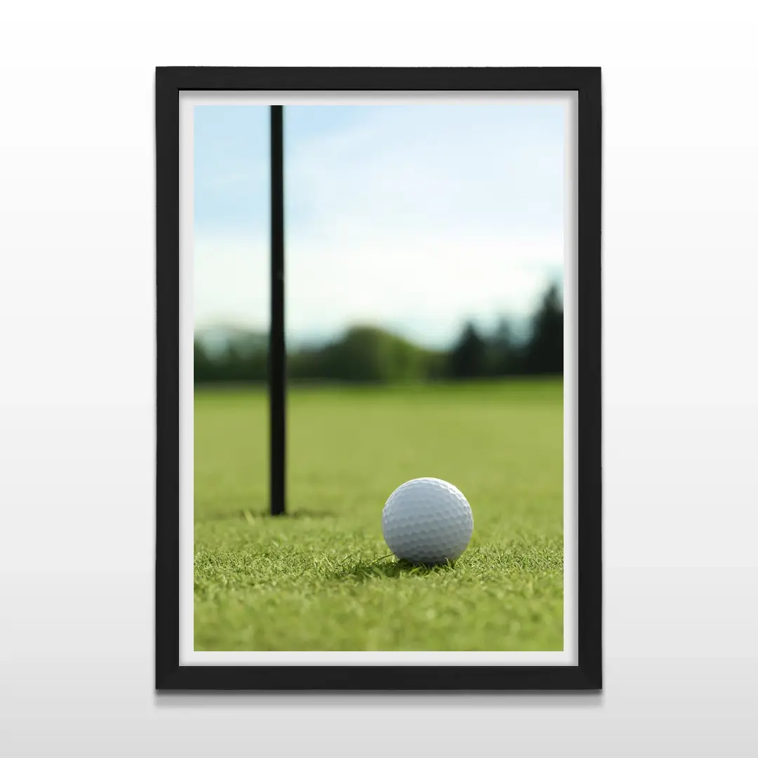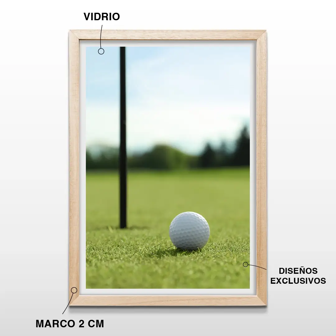 El cuadro decorativo Campo de Golf presenta un paisaje abierto donde el fairway se extiende con líneas suaves y un verde intenso que domina la escena. La perspectiva del campo y la luz natural del entorno crean una imagen equilibrada que transmite amplitud, silencio visual y contacto con la naturaleza.