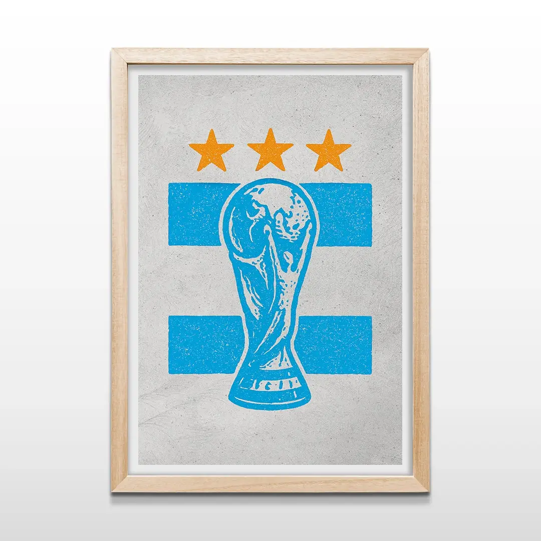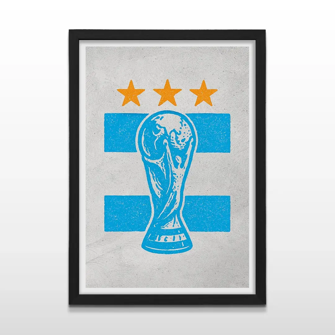 Inmortaliza la gloria y la pasión que definen una nación con el cuadro decorativo “Copa del Mundo”, una pieza única que trasciende la decoración. Este no es solo un cuadro moderno para tu hogar, es el símbolo tangible de la hazaña deportiva más grande, capturando el espíritu de la victoria con las inconfundibles tres estrellas sobre los colores celestes y blancos.