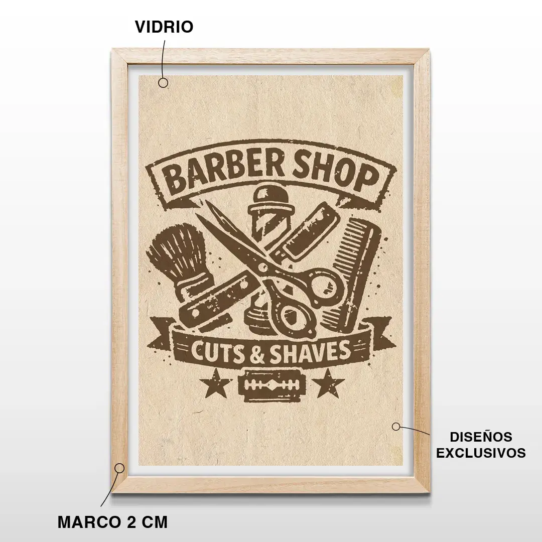 Este cuadro de barbería vintage se integra de forma natural en barberías old school, salones masculinos contemporáneos o espacios de cuidado personal que buscan diferenciarse con una identidad auténtica y reconocible.