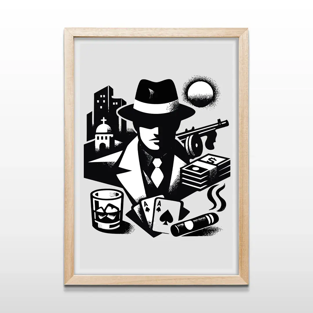 El Patrón encaja de forma natural en interiores modernos, industriales o de estilo urbano sofisticado. Su lenguaje visual inspirado en la cultura mafia y el cine clásico lo convierte en una opción ideal para quienes buscan cuadros decorativos modernos con personalidad, capaces de elevar el impacto visual de paredes sobrias o ambientes de alto nivel.