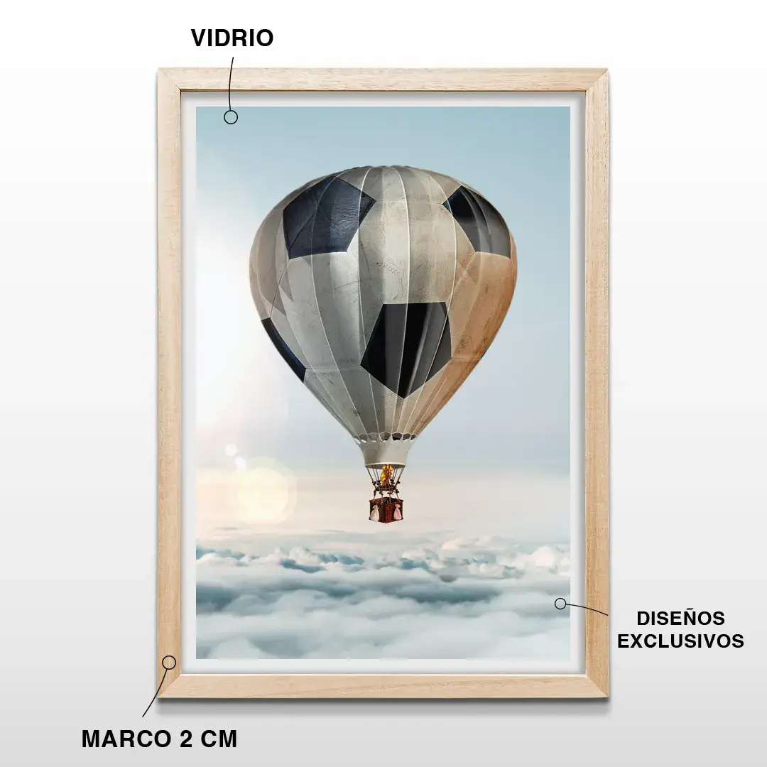 Incorporar este cuadro de globo aerostático fútbol significa sumar arte decorativo moderno de autor que conecta emoción, imaginación y diseño. Una elección destacada dentro de los cuadros decorativos modernos en Argentina para quienes desean una obra original que transforme la pasión por el fútbol en una experiencia visual poética, optimista y cargada de significado.