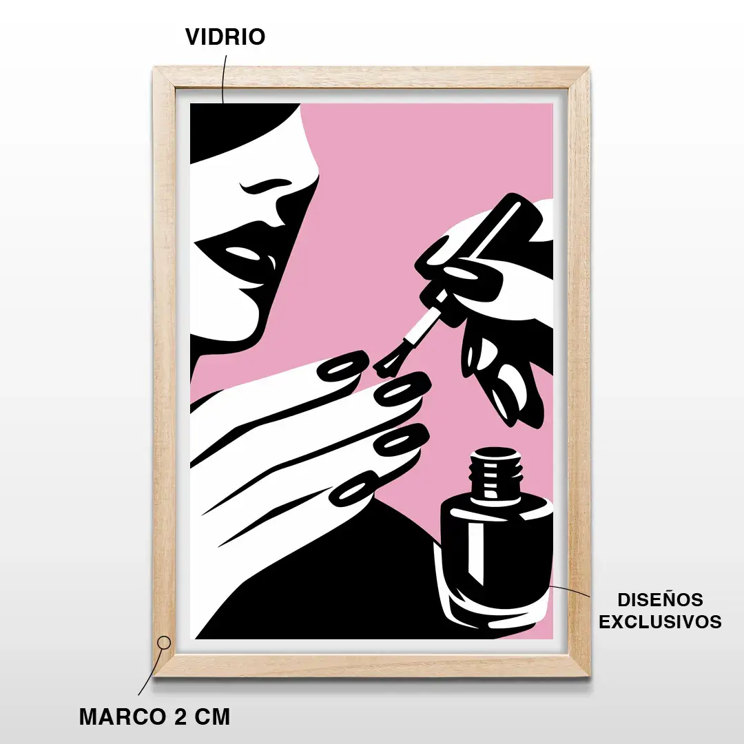 Pensado para quienes desean comprar cuadros decorativos de estética en Argentina, este cuadro de uñas y manicura es una pieza de arte enmarcado que combina diseño único, feminidad y sofisticación, ideal para crear un ambiente cuidado, coherente y visualmente atractivo.