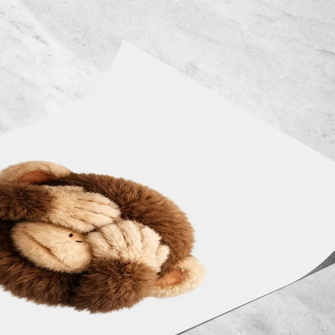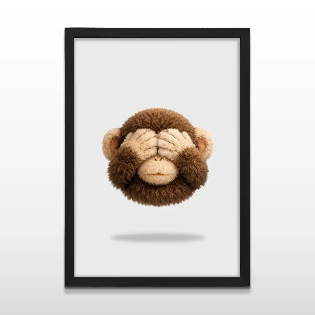 El cuadro decorativo Mono Sabio No Ver es una obra de arte contemporáneo de estética minimalista que interpreta el principio ancestral de la sabiduría consciente desde una mirada visual refinada. La composición presenta la cabeza de un simio hiperrealista, de textura suave y expresión serena, cubriendo sus ojos con las manos sobre un fondo gris neutro que potencia el silencio visual y la profundidad conceptual de la escena.
