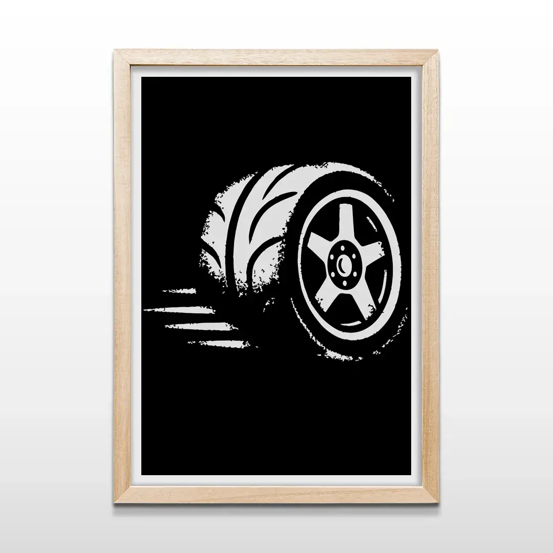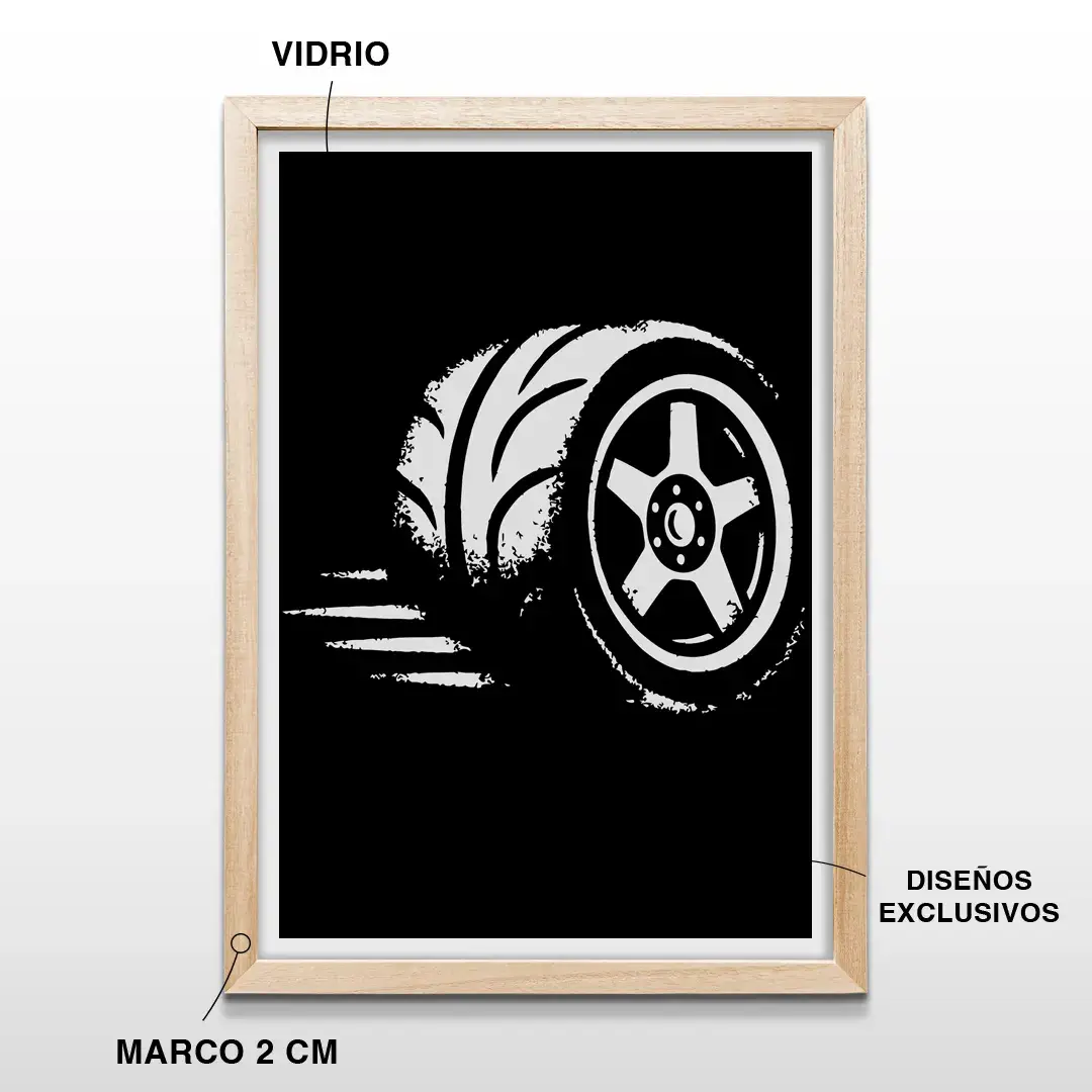 Ideal para quienes buscan comprar cuadros decorativos de automovilismo en Argentina, este cuadro de neumático de carrera en blanco y negro es una pieza de wall art premium orientada a amantes del motor, la velocidad y una decoración conceptual que rinde homenaje al rendimiento, la precisión y la adrenalina pura.