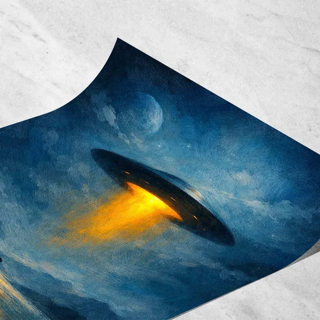 Pensado para quienes desean comprar cuadros decorativos en Argentina con temática espacial y arte moderno, este cuadro de OVNI y paisaje nocturno premium es una pieza de autor que aporta misterio, profundidad visual y una narrativa cósmica sofisticada a cualquier ambiente.