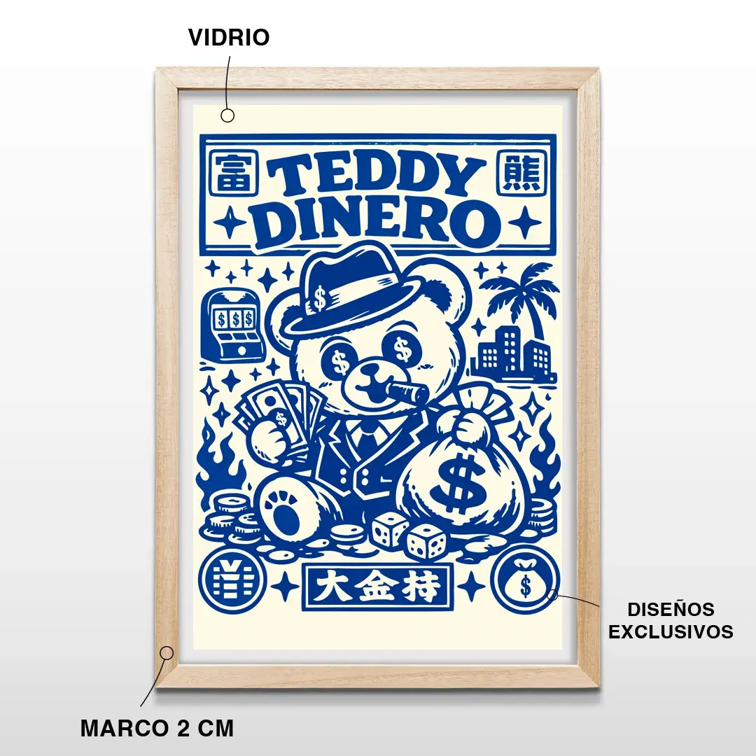Si buscás comprar cuadros decorativos en Argentina que combinen arte pop, cultura urbana y simbolismo de poder, este cuadro de Teddy mafioso y dinero estilo arte gráfico premium es la inversión perfecta para quienes quieren una decoración de autor que inspire conversación, creatividad y un toque de rebeldía elegante.