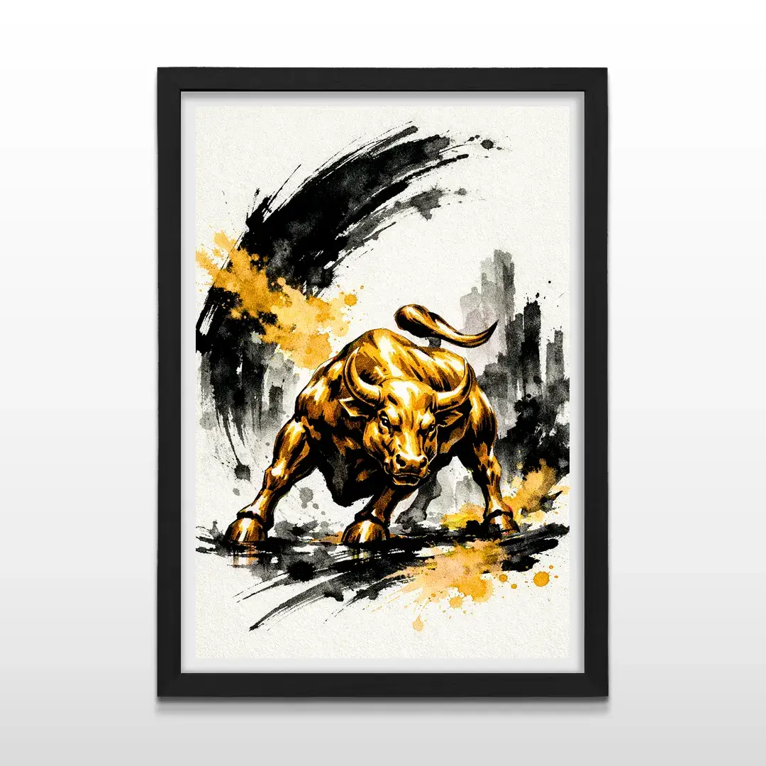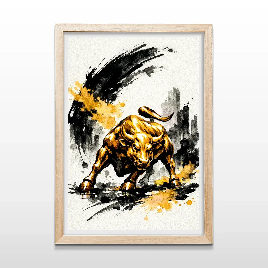 Si buscás comprar cuadros decorativos en Argentina que funcionen como un símbolo de prosperidad y liderazgo, este cuadro del toro de Wall Street dorado estilo arte expresionista premium es la inversión ideal para quienes desean una decoración de autor que inspire crecimiento constante, reafirme la mentalidad de abundancia y transforme las paredes en un emblema del éxito económico.